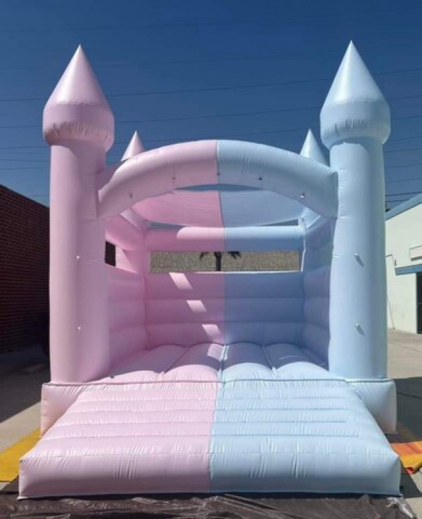1Celebrate your joyous occasion with our Pink and Blue Gender Reveal Castle! This enchanting inflatable features a charming castle design adorned with both pink and blue accents, creating a whimsical atmosphere for your special reveal moment. As guests gather in anticipation, the castle sets the stage for an unforgettable announcement, with its vibrant colors adding to the excitement and anticipation. Whether it's a princess or a prince on the way, our Gender Reveal Castle promises to make your reveal moment truly magical. Elevate your event with this delightful centerpiece, ensuring cherished memories and smiles all around! π°πππΆπ