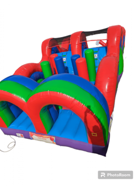 1Introducing our incredible Obstacle 30' Inflatable, designed to take your event to the next level of excitement and fun! This gigantic inflatable obstacle course is perfect for parties, corporate events, school carnivals, and more.