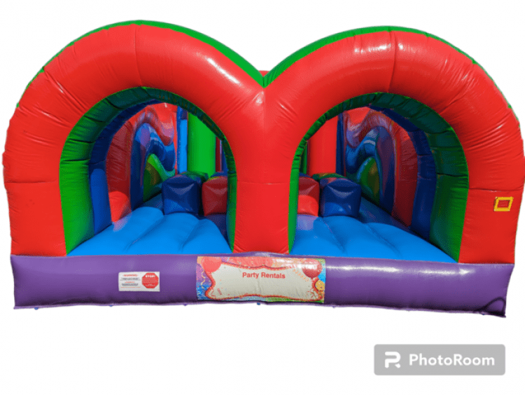 Turn your event into an adventure zone with our 60' long Wet/Dry Obstacle Course featuring an 18' tall slide! Perfect for outdoor parties, team-building events, or festivals, this exhilarating inflatable offers a straight design packed with thrilling obstacles and a towering slide. Whether wet or dry, participants will navigate through tunnels, climb walls, and conquer challenges before zooming down the towering slide for an epic finish. Elevate your event with this action-packed attraction, ensuring excitement and memorable experiences for all attendees! 🌊🎉