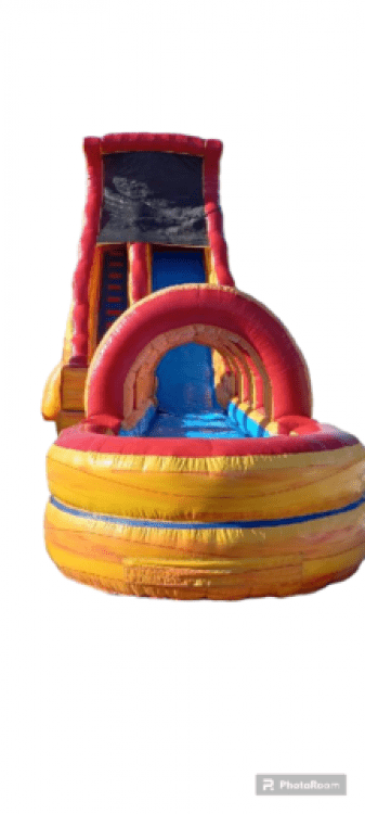 Perfect for backyard parties, school events, or community gatherings, the 22' Tall VOLCANO Single Lane Wet Slide with Slip N Slide guarantees unforgettable memories and endless entertainment. So, why wait? Bring the heat to your next event and make a splash with this incredible water slide!